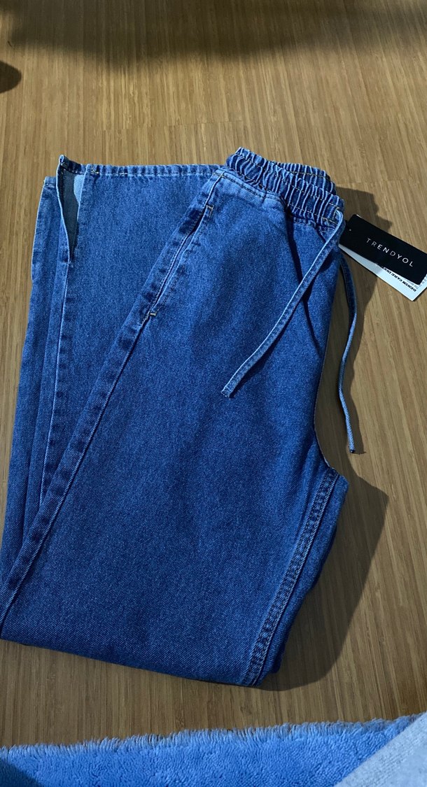 TrendYol marka lacivert midi boy, regular fit, fermuarlı ve lastikli bel detaylı rahat kot pantolon. Günlük sokak stili için uygundur. Hiç kullanılmadı etiketli duruyor beden uymadı iade süresi geçtiği için satıyorum bel30 boy108