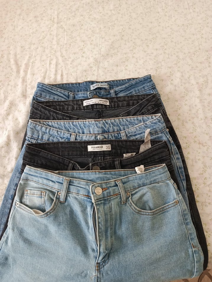 5 adet pantolon 28-30 uyumlu sayılı kullanıldı isteyene ölçü verebilirim mom jean olanda var likralı olanda tekli 250 TL olur ağ kısımlarından belli az kullanılmıştır