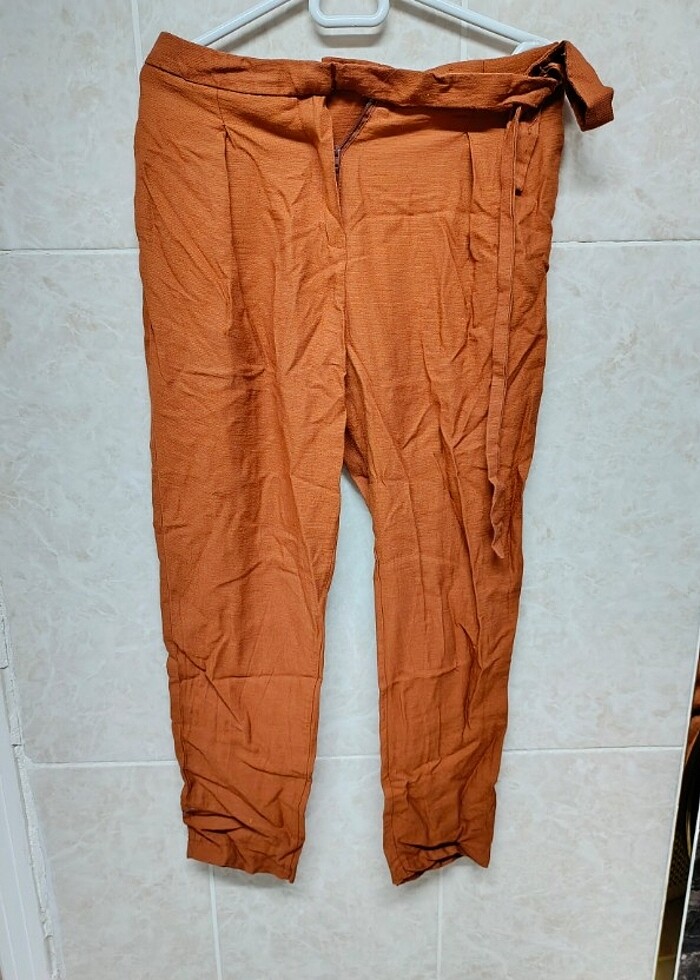 Çok rahat kadın kahverengi pantolon. Cebinde yırtık var, biraz da tülenmeleri var özellikle A kısmında. Fotoğrafta gösterdim