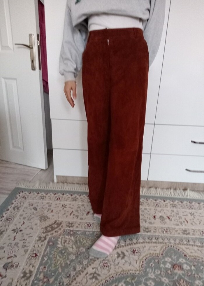 İspanyol ince kadife pantolon yenidir hiç giyilmedi. 102 cm dir. Kiremit rengidir. Çok güzel bir rengi var.