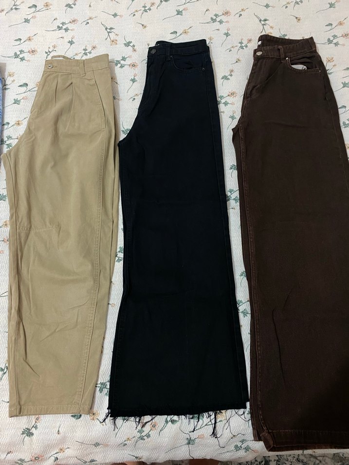 Düğmeli, bol kesim, pastel mavi renkte normal boy midi kot pantolon. Günlük sokak stiline uygun rahat bir tercih. 3 tanesinin toplu fiyatıdır. Kahverengi ve siyah olan addax markasına ait bej olan butik ürünü. İsterseniz ayrı da alabilirsiniz. Kahverengi olan 40 beden ama pensli isterseniz açtırabilirsiniz açtırmadan 38 bedene ayarlı. Defacto manuka lcw koton addax