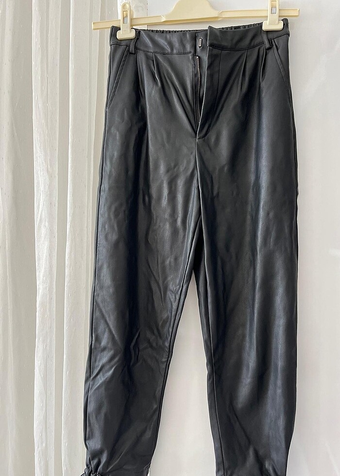 Siyah deri ayakları lastikli belinin arkası lastikli pantolon hiçbir defosu yok