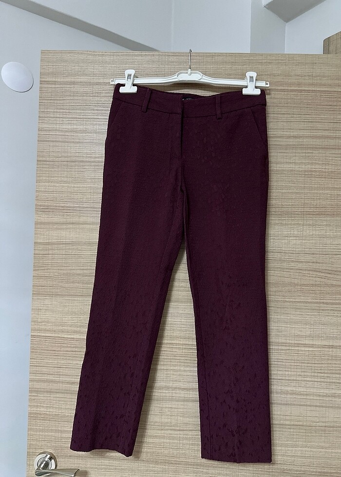 Sıfır ayarında pantolon dar paça bilek boy arka cep dikişleri açılmamış bile o derece yeni ☺️ kendinden desenli bir kumaşı var