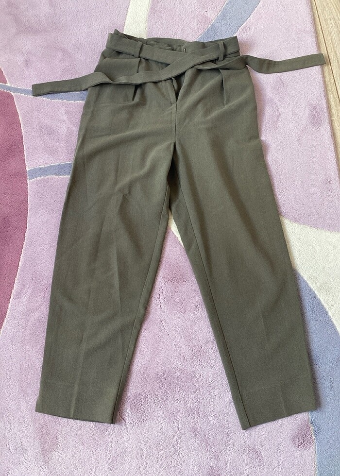 Kemerli yüksek bel kumaş pantolon çok temiz