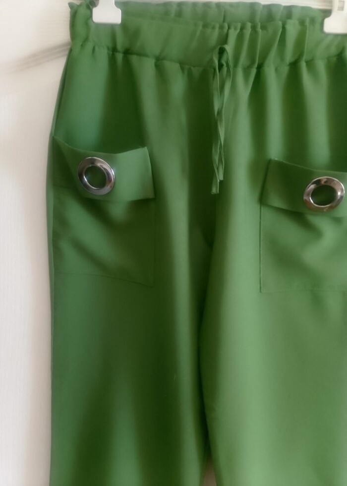 Boyu 97 cm önde cep detayı mevcut bel ve paça lastikli fıstıki yeşil