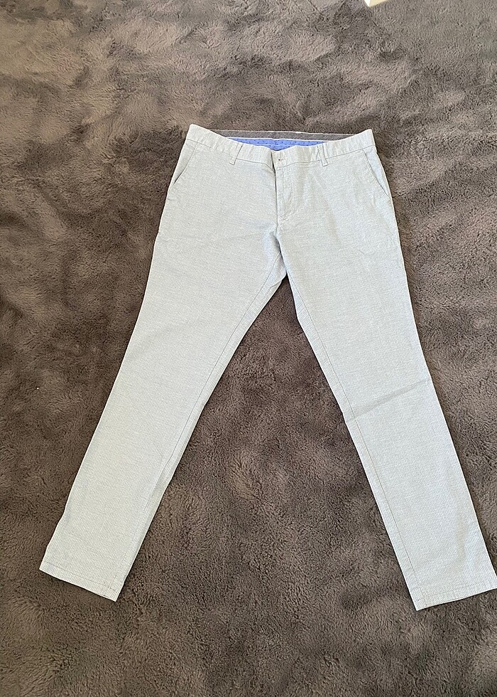 Erkek chino pantolon Bebe mavisi renginde 48 beden Boyner’den alındı. Deformesi yok.