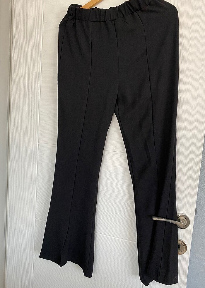 Hiç giyilmedi ön paçasında yırtmaç detayı var ince güzel pantolon bel ölçüsü:35 cm basen ölçüsü:45 cm