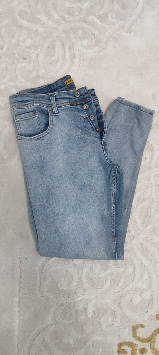 .Ürün tertemiz hatasız deformesizdir. Bel 37 cm Boy 86 cm Paça 12cm Basen 23cm Rengi lacivert ve buz beyazı gibi.