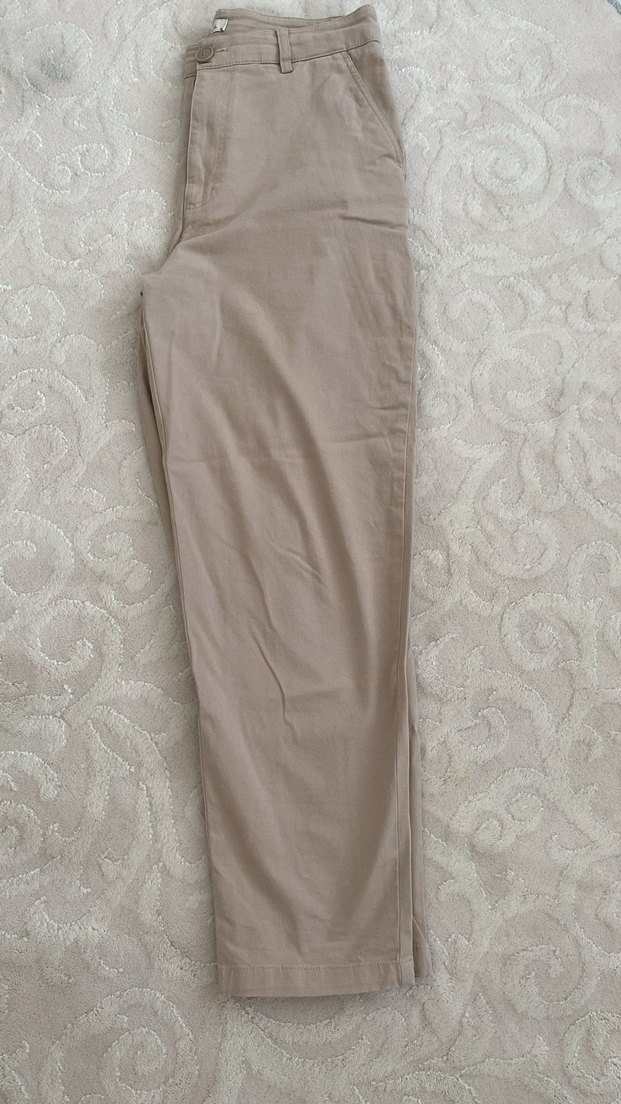 Bej renkli keten kumaştan, normal boy ve regular fit kesime sahip kadın pantolonu. Günlük kullanıma uygun, sade ve rahat bir stil sunar.