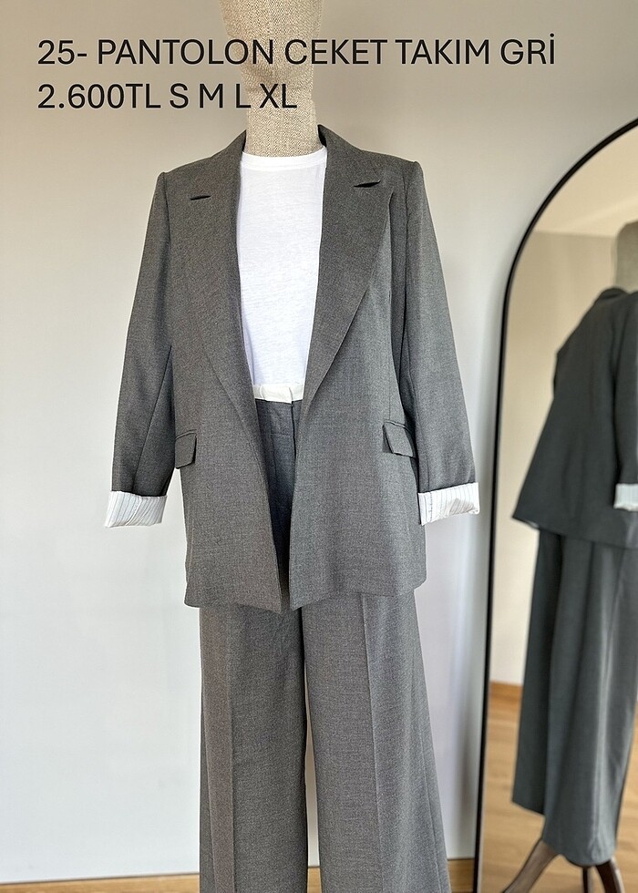 Pantolon Ceket Takım, Gri Renk. (SATIN ALMAK İSTEDİĞİNİZ BEDENİ LÜTFEN MESAJLA BELİRTİN, YENİ İLAN AÇALIM) Şuan, 2 adet S, 2 adet M, 1 L, 1 XL bedenleri mevcuttur. Etiketli, kullanılmamış. İş değişikliğinden dolayı elimizdeki ürünleri uyguna satıyoruz. İade ve Değişim yapamıyoruz, anlayışınız için teşekkürler. Mağazalar ve satıcılar diğer kadın giyim tekstil ürünlerimize lütfen bakınız, toptan alınacaksa uygun fiyata bırakacağız. Teşekkürler.