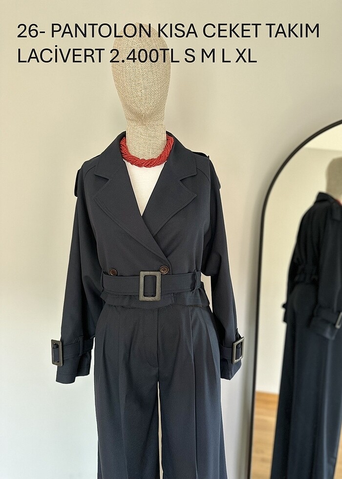 Pantolon Ceket Takım, Lacivert Renk. (SATIN ALMAK İSTEDİĞİNİZ BEDENİ LÜTFEN MESAJLA BELİRTİN, YENİ İLAN AÇALIM) Şuan, 1 adet S, 2 adet M, 1 L, 1 XL bedenleri mevcuttur. Etiketli, kullanılmamış. İş değişikliğinden dolayı elimizdeki ürünleri uyguna satıyoruz. İade ve Değişim yapamıyoruz, anlayışınız için teşekkürler. Mağazalar ve satıcılar diğer kadın giyim tekstil ürünlerimize lütfen bakınız, toptan alınacaksa uygun fiyata bırakacağız. Teşekkürler.
