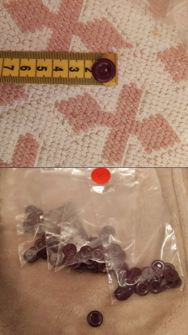 Çeşitli el işi projeleri için uygun, çapı yaklaşık 1,2 cm olan koyu mor düğme paketi. Bir pakette 20 adet vardır paket fiyatıdır.