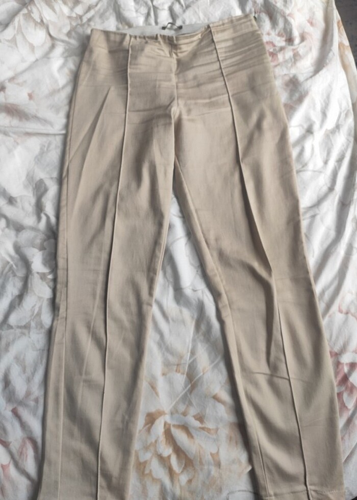 Likralı beli lastikli yapışan pantolon 36-38 bedene uygun 163 cm boyundayim bileğime geliyor hiçbir defosu yoktur krem rengindir