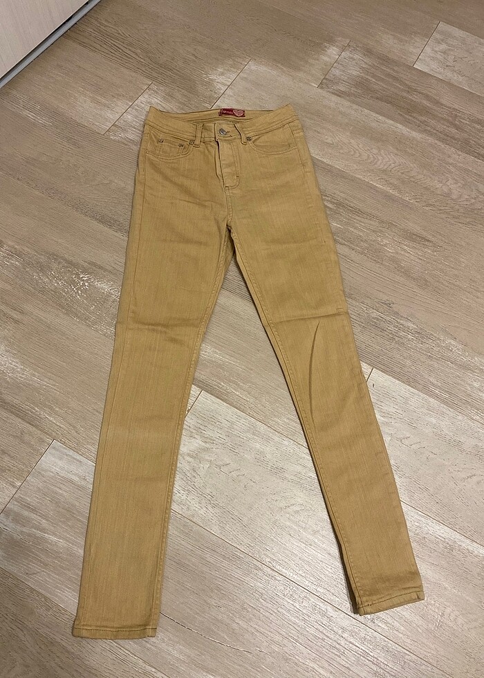 Esnek likralı bej rengi dar paça yüksek bel pantalon boyum168cm kilom52