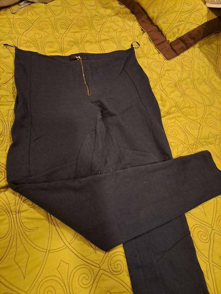 Ön fermuarlı, normal boyda, lacivert renkli, tayt kadın kumaş pantolon. Ofis ortamı için uygun, trend sokak stiliyle uyumlu.