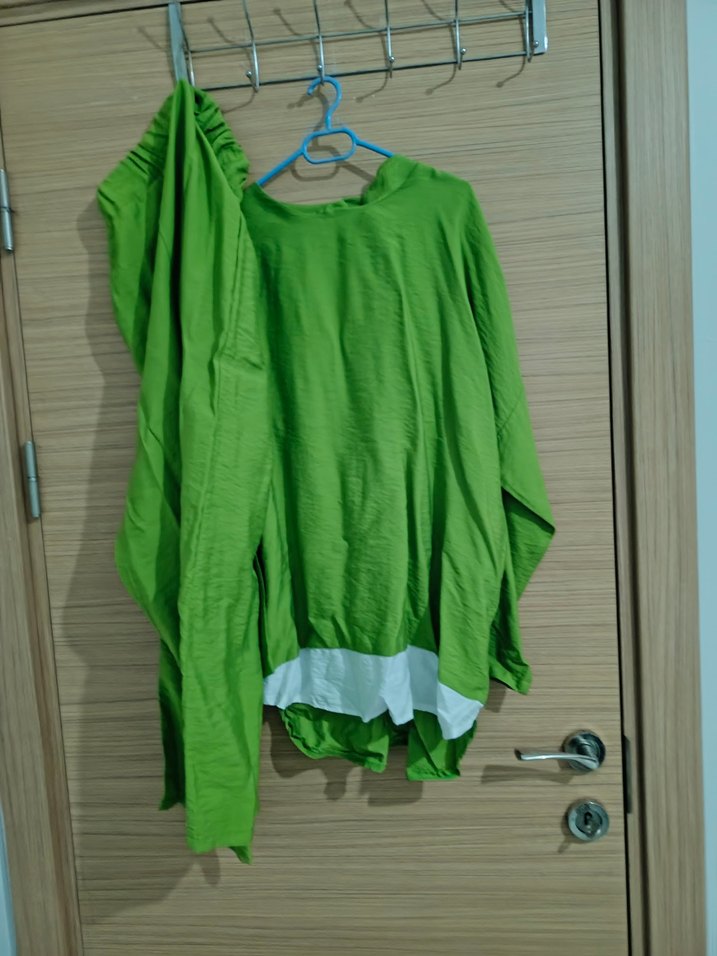 Nefes alabilir keten kumaştan, yeşil renkli, bol kesim, 36 beden uyumlu sıfır