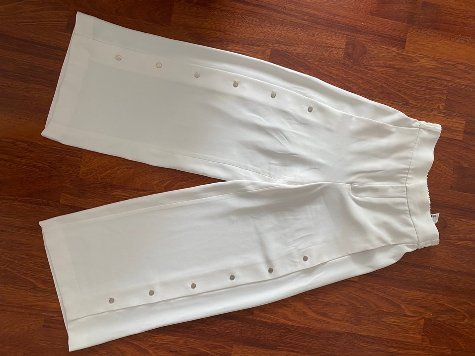 Kırık Beyaz dökümlü kumastan, sayılı kullanıldı, ölçüler resimlerde mevcuttur, dolap beklemekten yer yer sarı lekelerı mevcuttur, rahat düğmeli detaylı, midi boy regular fit kadın pantolon. Minimalist ve normcore tarzıyla günlük kullanıma uygundur. ✨