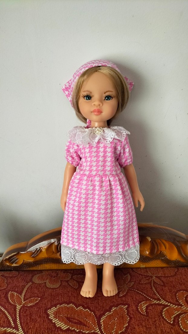 Pastel pembe kazayağı desenli elbise ve dantel detaylı, arkası cırt cırtlı giydirip çıkartması kolay