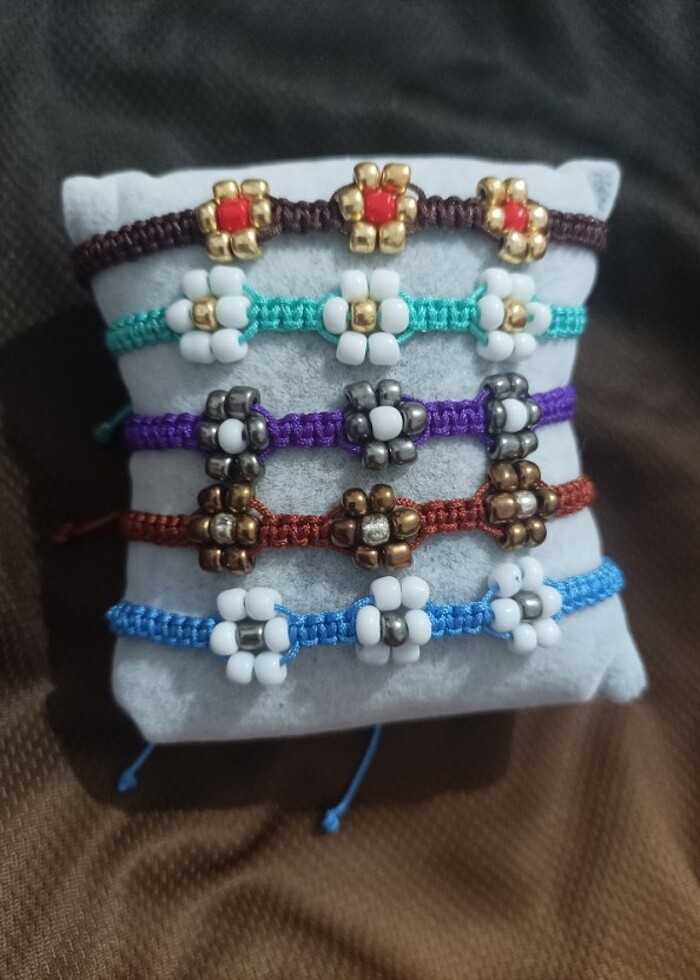 Makrome el yapımı çiçekli papatya bileklik paraşüt ipi ile yapıldı adet fiyatıdır