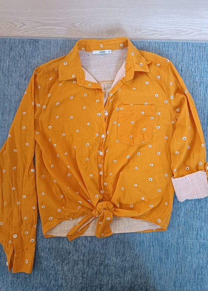 Papatya desenli gömlek hiç kullanılmadı.