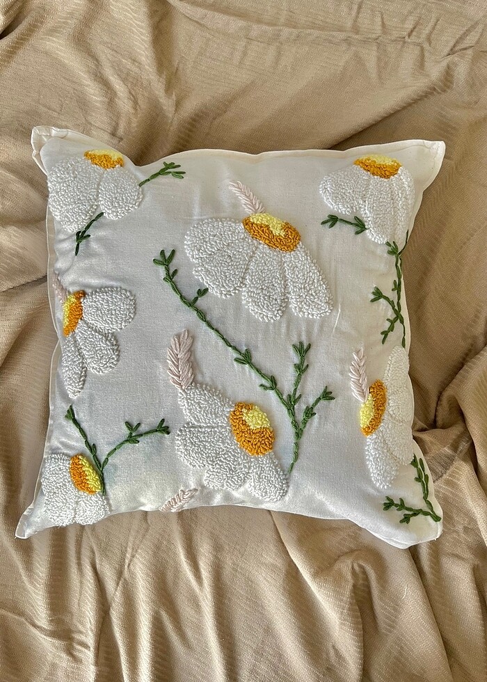 Papatya Desenli Punch Kırlent Kılıfı