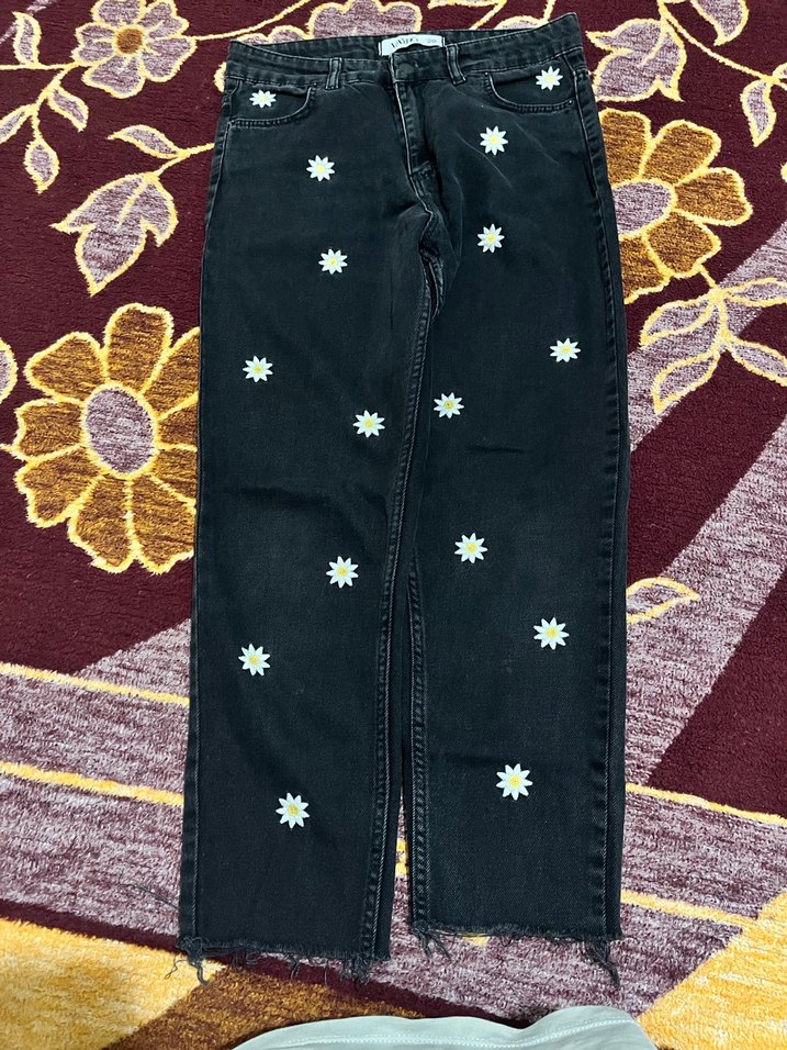 Papatya işlemeli mom jean