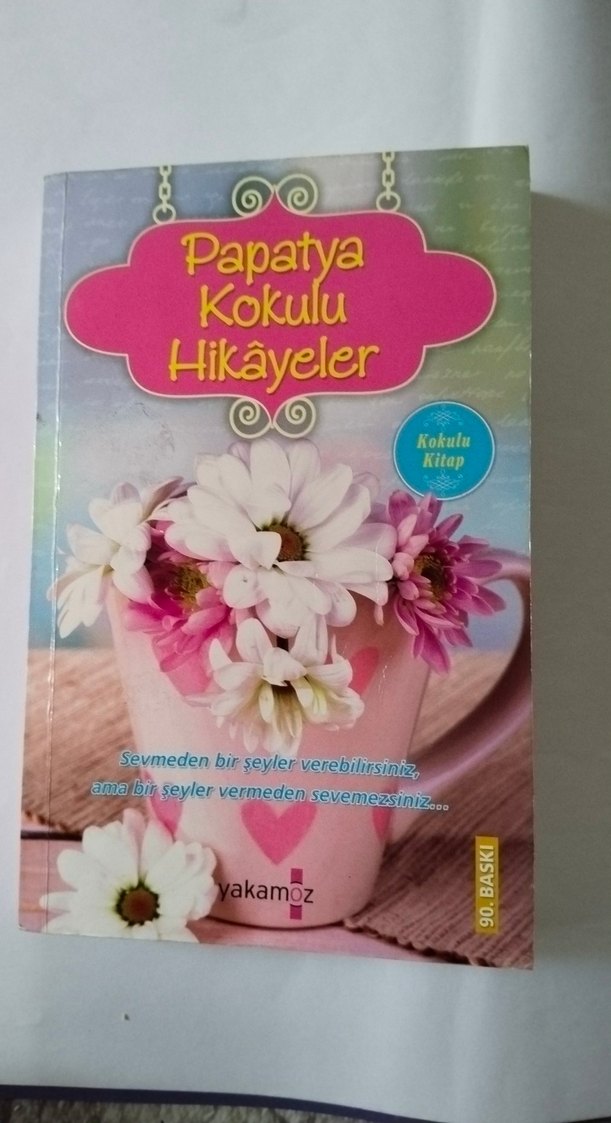Papatya Kokulu Hikayeler adlı kokulu şiir kitabı, sevgi ve duygular üzerine hikayeler içerir. Sevmeden bir şeyler verebilirsiniz ama vermeden sevemezsiniz mesajı verir. 352 sayfa yetişkinler için uygundur. kusurludur kusurları fotoğrafta gösterilmiştir papatya kokusu yoktur
