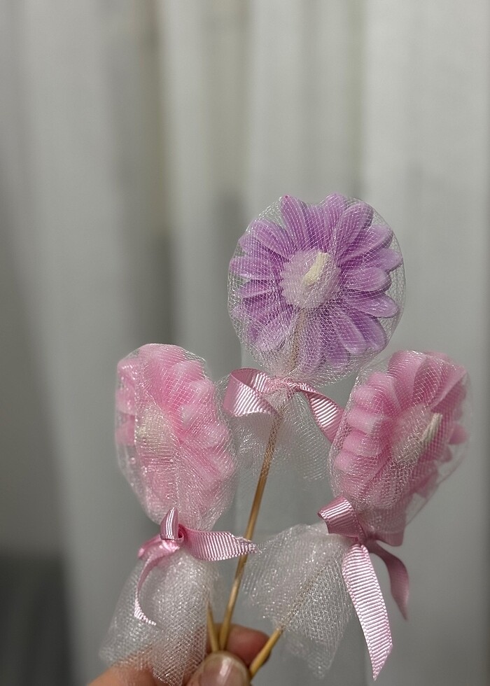 7 × 7 ölçüsü papatya mumun istenilen renkte hazırlanır kurdele ve tüllenip gönderilir Toplu siparişte indirim uygulanır