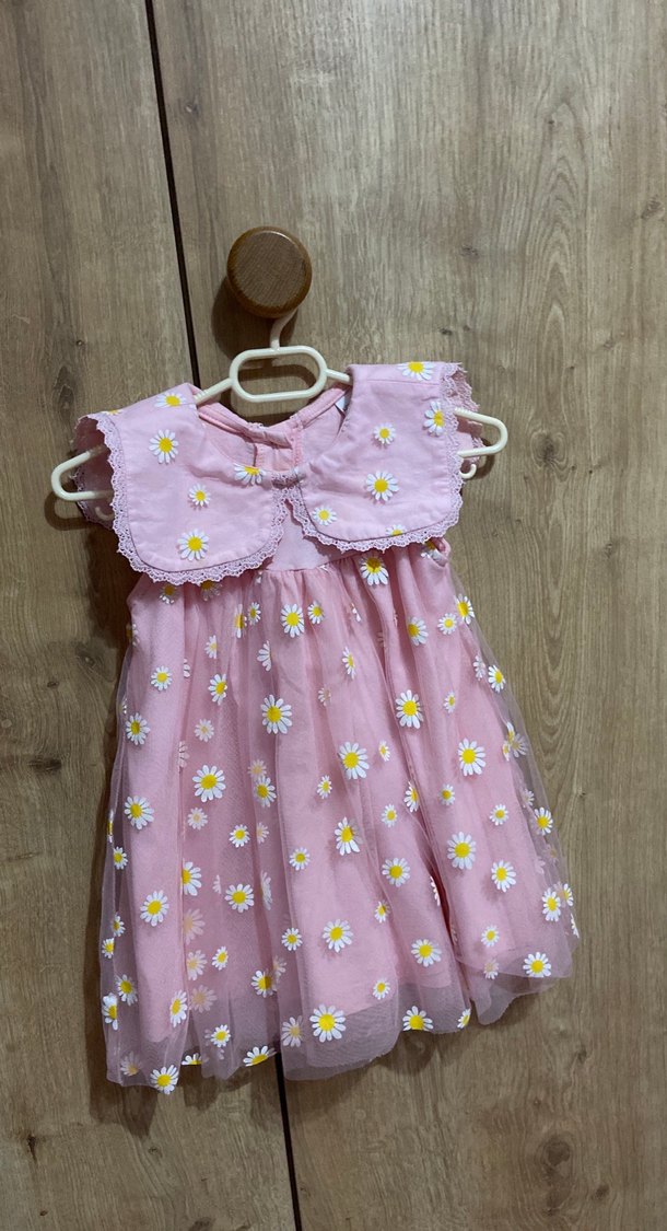 Papatya Nakışlı Kız Çocuk Elbisesi