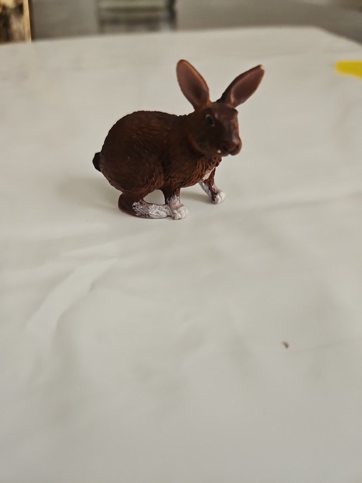 Detaylı özelliklere ve gerçekçi dokuya sahip koyu kahverengi tavşan figürü.