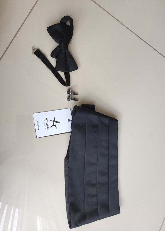 Kol düğmesi papyon ve kuşak düğme kullanıldı düğün zamanı sadece.