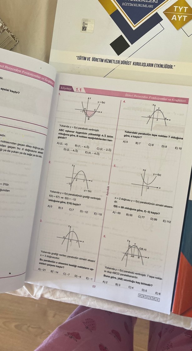 Parabol ve fonksiyonlar konularını grafikler ve çoktan seçmeli sorularla anlatan sınav hazırlık kitabı.