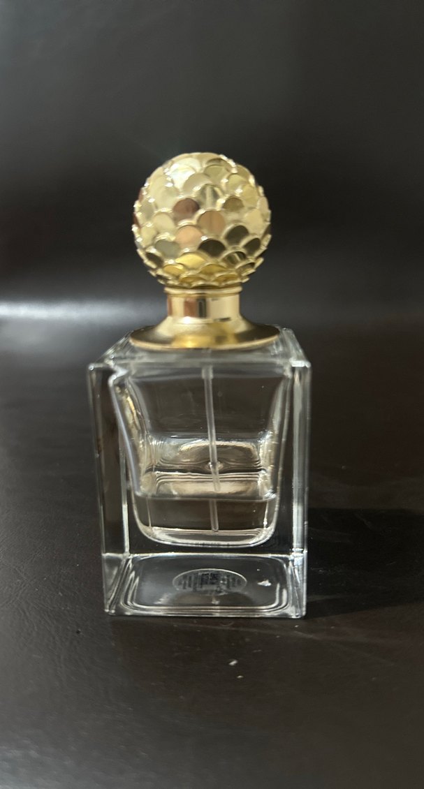 İçi boş parfüm şişesi yarısından az bir şey dolu