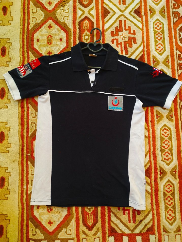Siyah S/M Paramedik Tişörtü temizdir rengi iyi durumda hiç gitmemiş.