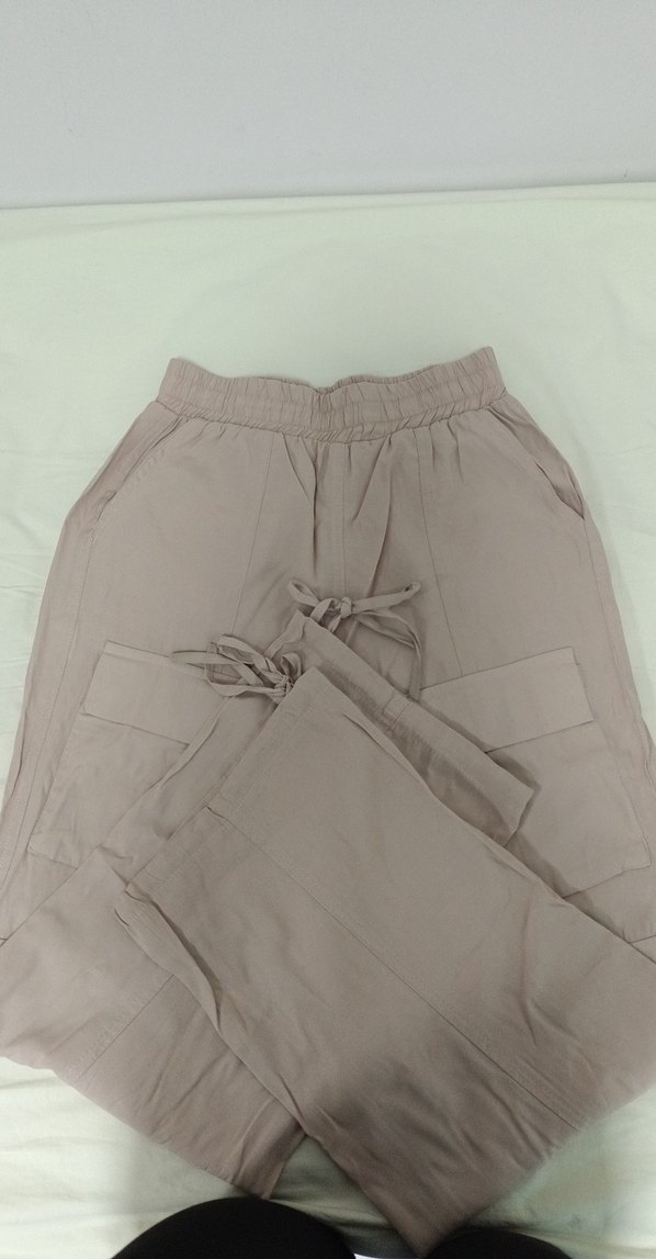 paçası ayarlanabilir,bej rengi, paraşüt pantolon, görselde biraz kırışık ama ütülenebilir yapıda