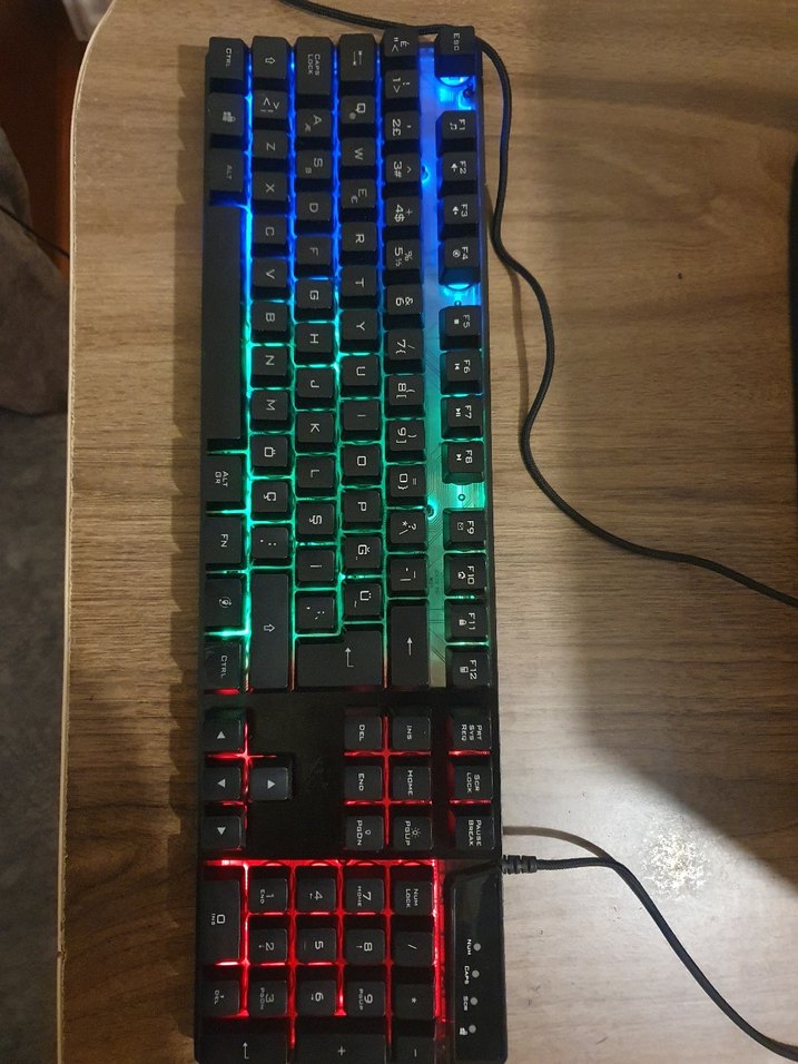 tuşların çoğu çalışmıyor, içindeki kablolardan bazıları ezilmiş gibiydi tamir edilirse belki düzelir. tuşlarda silinme yok, tuş takımı için alınabilir göründüğü fiyata bırakıyorum model: trust azor gxt838