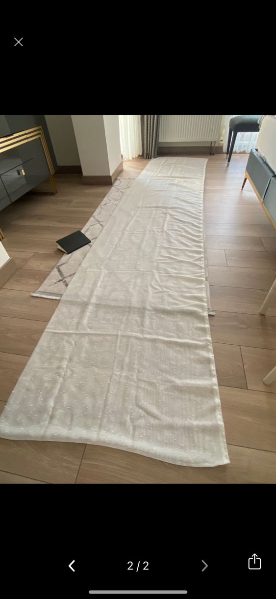 Bayağı uzun bir kumaş var elimde, 7.64cm x 82 cm. Tülden kesilmiş bir parça. Tam beyaz değil, krem renginde