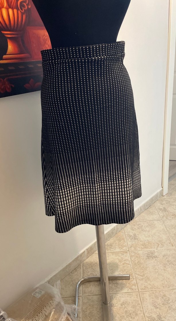 Bu siyah midi eteği, pamuklu kumaştan yapılmış, batik desenlidir. Ofis için çağdaş Paris tarzına uygundur. 1 kez kullanıldı yenidir