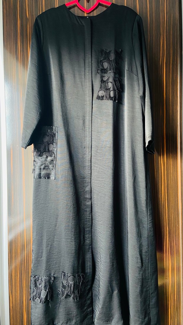 Siyah Koltuk altından bedenin en ölçüsü:58 Kol boyu:56 Kol pazu genişliği:20 Tam boy :138 Etek ucu genişliği 82 A kesım aşşaya doğru hafif çan iniyor
