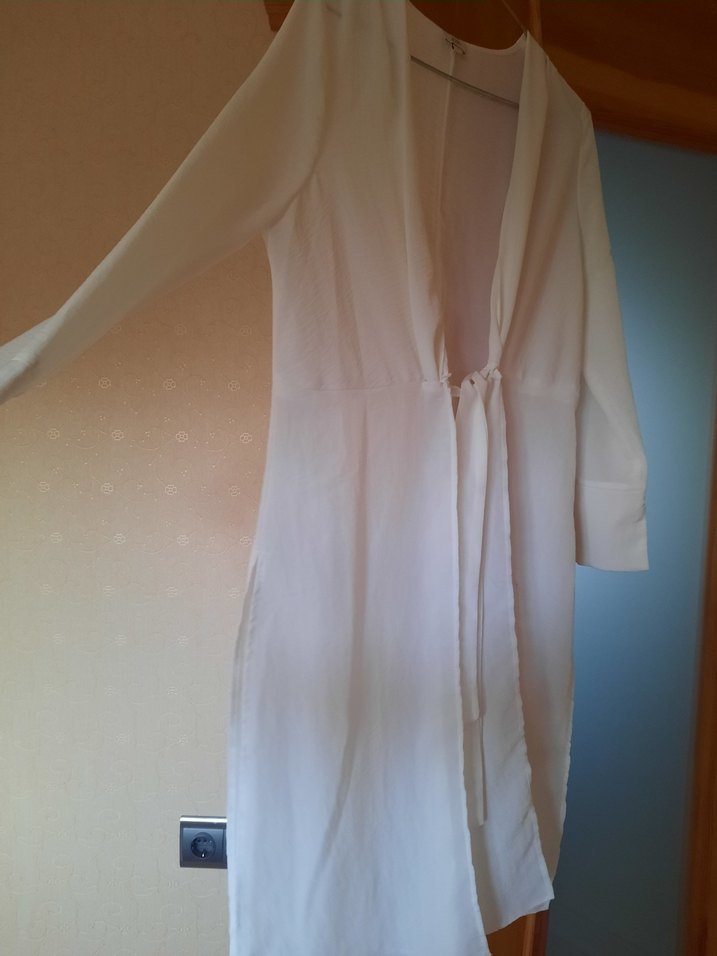 Beyaz renkte, V yaka . Askılı kollu, bol kesim ve desensizdir. Rahat kullanım sağlar.