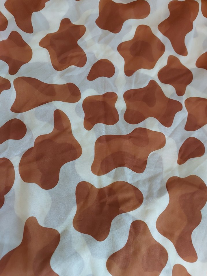 Yumuşak sentetik kumaştan, açık zemin üzerine kahverengi soyut desenli yandan bağlamalı pareo