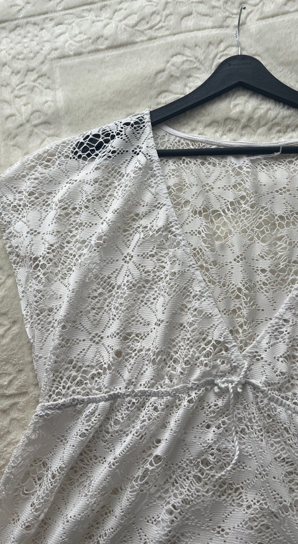 V yakalı pareo gecen yaz almistim gevşek midi kesim ve dantel detaylı iki uc kere giydim