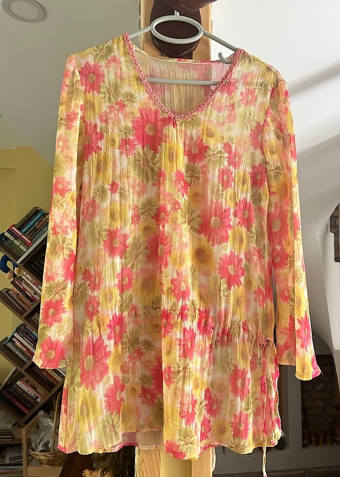 Bikini üstü pareo transparan çiçekli beli kemerli ipli sorunsuz