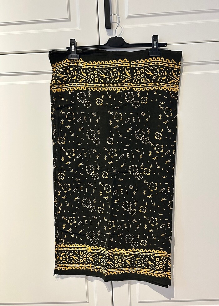 En 90 boy 196 cm’dir pareo olarak bele bağlanır kumaşı oldukça tok ve güzeldir iki kere kullanıldı