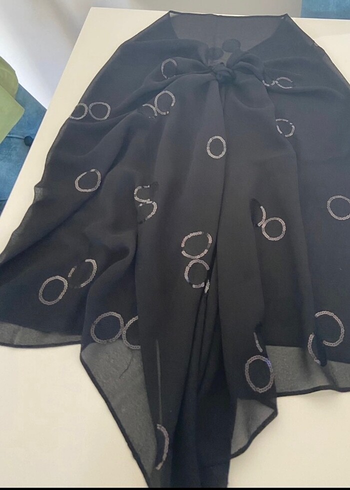 Yurt dışından hediye gelmişti hiç kullanılmadı krep şifon üzerinde pul payet işlemeli penti değil