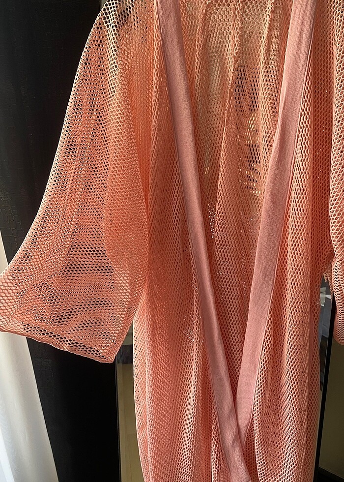 Denizde mayo üzerine çok şık duruyor etek ucu yanları yırtmaçlı,rengi somon rengi standart beden s,m,l giyen birine rahat olur