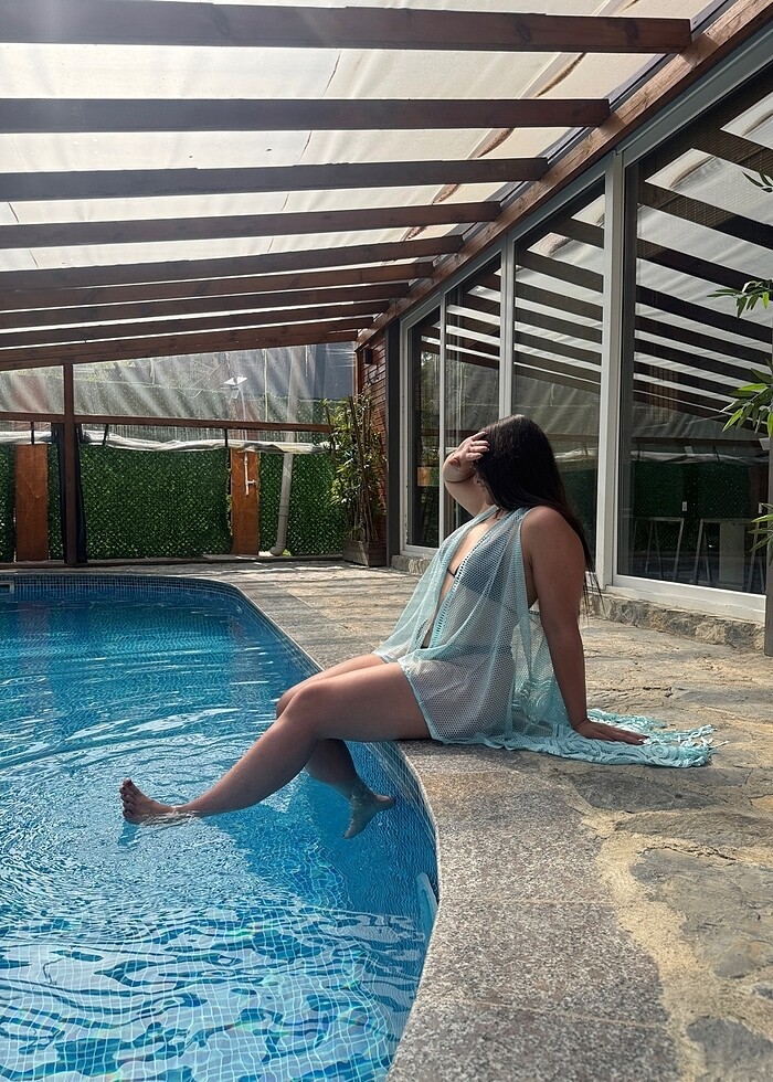 Dantel detay bebek mavi pareo