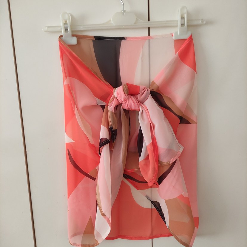 Handmade Pembe bağlamalı, dökümlü ve salaş kesim pareo. Kısa boyu ve modern tarzıyla günlük kullanıma uygundur. صصصصصصص