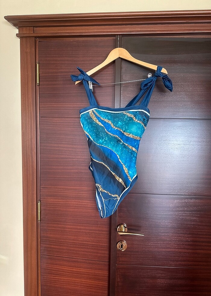 Hiç kullanılmamış pareosuyla takım ayarlanabilir askılı 40 beden mayo takım
