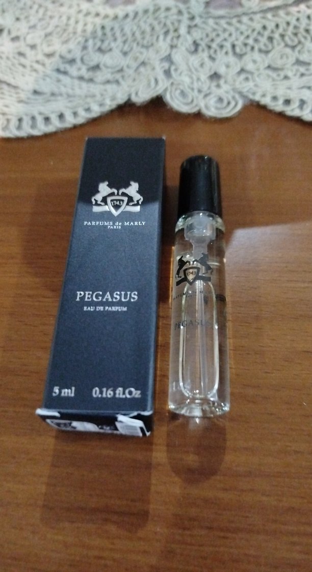 Parfums de Marly Pegasus, 5ml cam şişede erkek parfümüdür. Siyah kapak ve kutu ile sunulur. Eau de parfum konsantrasyonundadır.